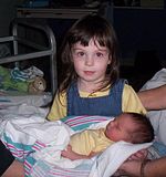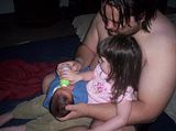 I just love the way they set up this shot. What you don't see is Mom and Kim on either side holding the two of them in place. :P